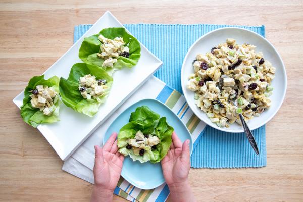 Ask your little chefs to help you mix all ingredients. Older kids can spread the chicken salad mix onto lettuce leaves.