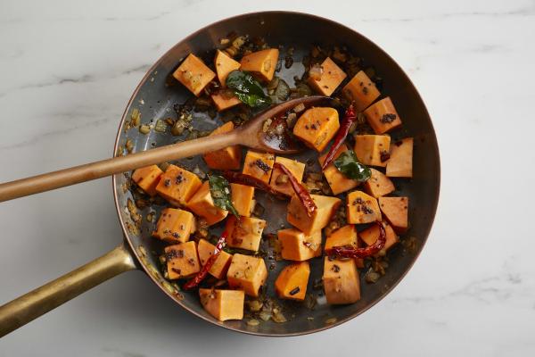 This curry recipe is versatile! You can easily substitute carrots or squash for the sweet potato. Serve with whole grain flatbread and yogurt for a quick, easy meal.